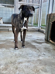 Die hübsche Kona (2-3 Jahre) wurde von einer Gruppe junger Leute ins öffentliche Shelter von Ludus gebracht, als sie auf der Straße von anderen Hunden angegriffen und gebissen wurde.