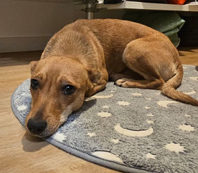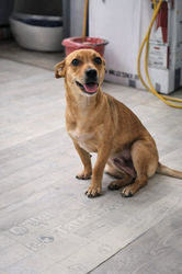 Cherry ist etwa 1,5 Jahre jung, hat eine Schulterhöhe von ca. 30 cm und ist ein Leichtgewicht mit 9 kg. Sie hatte vor kurzem Welpen. Leider konnten wir bisher nicht in Erfahrung bringen, was mit den Kleinen passiert ist 😒