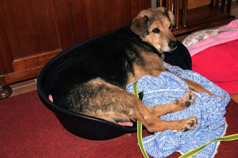 Kasper-Rudi wiegt 26 kg und muss noch ein wenig abspecken. Inzwischen hat er auch das gute Leben zu schätzen gelernt und bevorzugt das weiche Sofa.