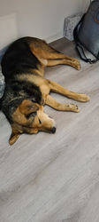 Im vorhandenen Rudel benimmt er sich sehr gut uns rücksichtsvoll und wartet bis er mit dem Fressen an der Reihe ist. Er frisst manierlich und schlingt nicht.