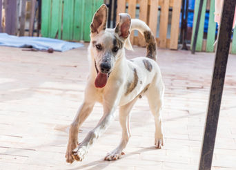 Lennox ist mitlerweile sehr verspielt und fühlt sich zu den Menschen hingezogen. Für ihn ist das Leben im Refugium, eingesperrt zu sein im Kennel, das Schlimmste.
