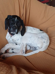 PERLA ist ansonsten ein typischer Welpe, absolut verträglich, gerne Unsinn im Kopf, die Schuhe werden umgelagert – aber NICHT angenagt. Ob sie Jagdtrieb hat, lässt sich noch nicht sagen; sie läuft nicht mit der Nase über dem Boden, aber die Wildschweine am Gartenzaun werden verbellt.